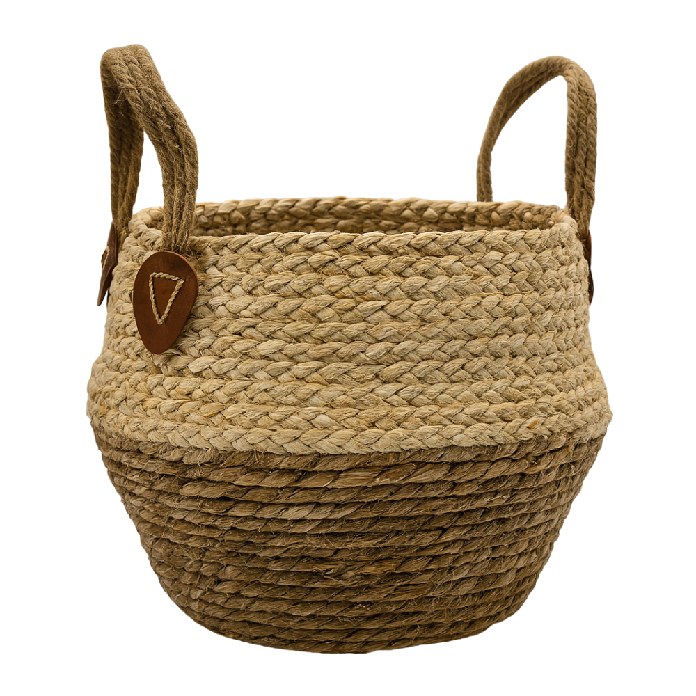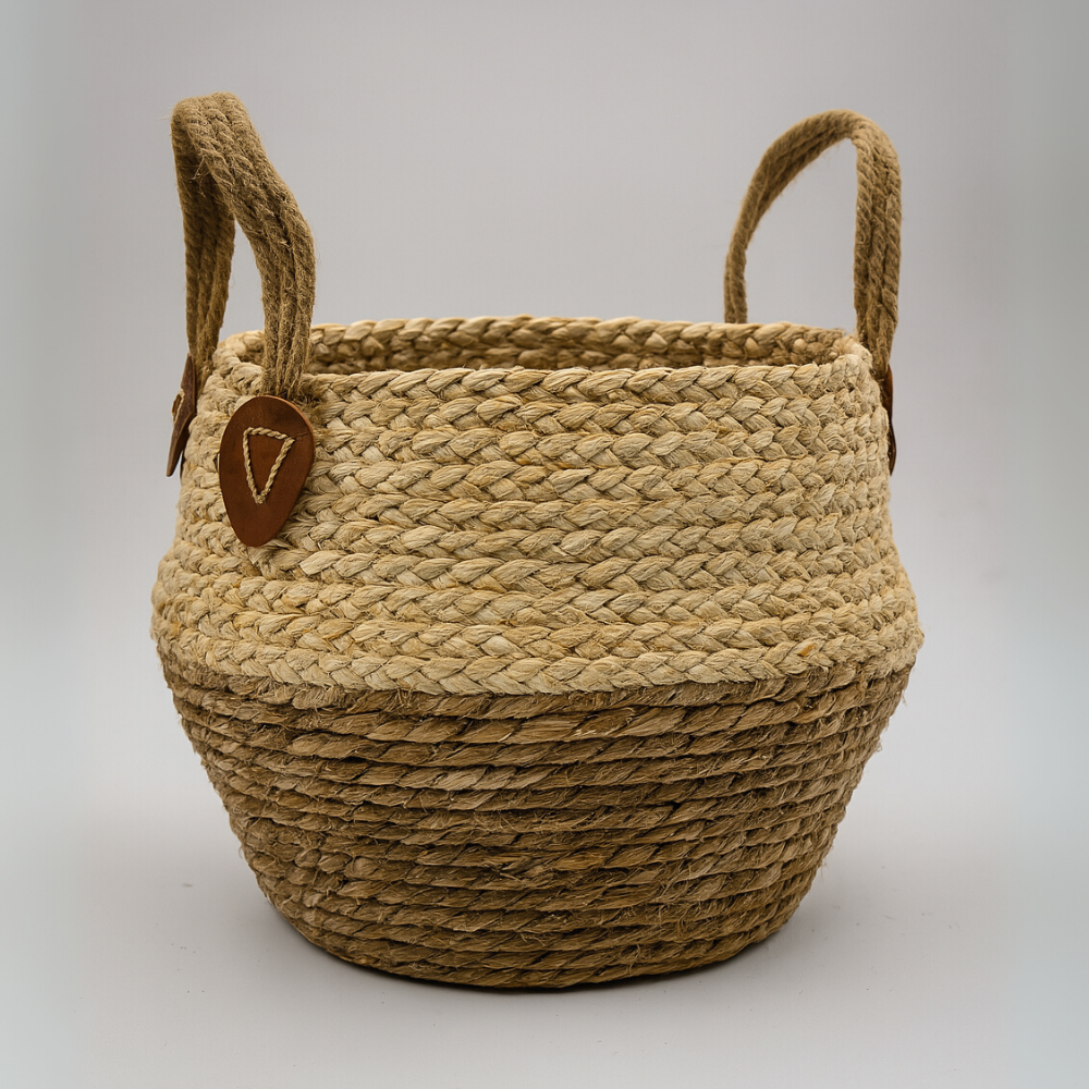 El diseño de yute con asas ofrece funcionalidad y belleza.