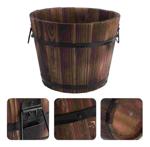 Macetero De Madera Tipo Barril Para Jardin Terraza Planta L