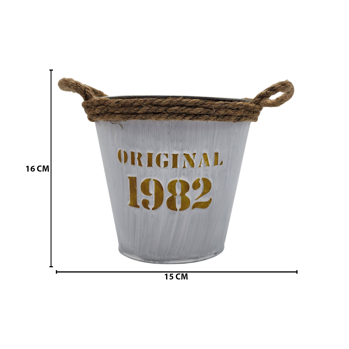 Dale un toque rústico y encantador a tus plantas con nuestro macetero de metal en forma de canasto con diseños únicos. Este macetero, con su apariencia de balde vintage, es perfecto para embellecer tus plantas y añadir un toque de estilo a tu decoración.