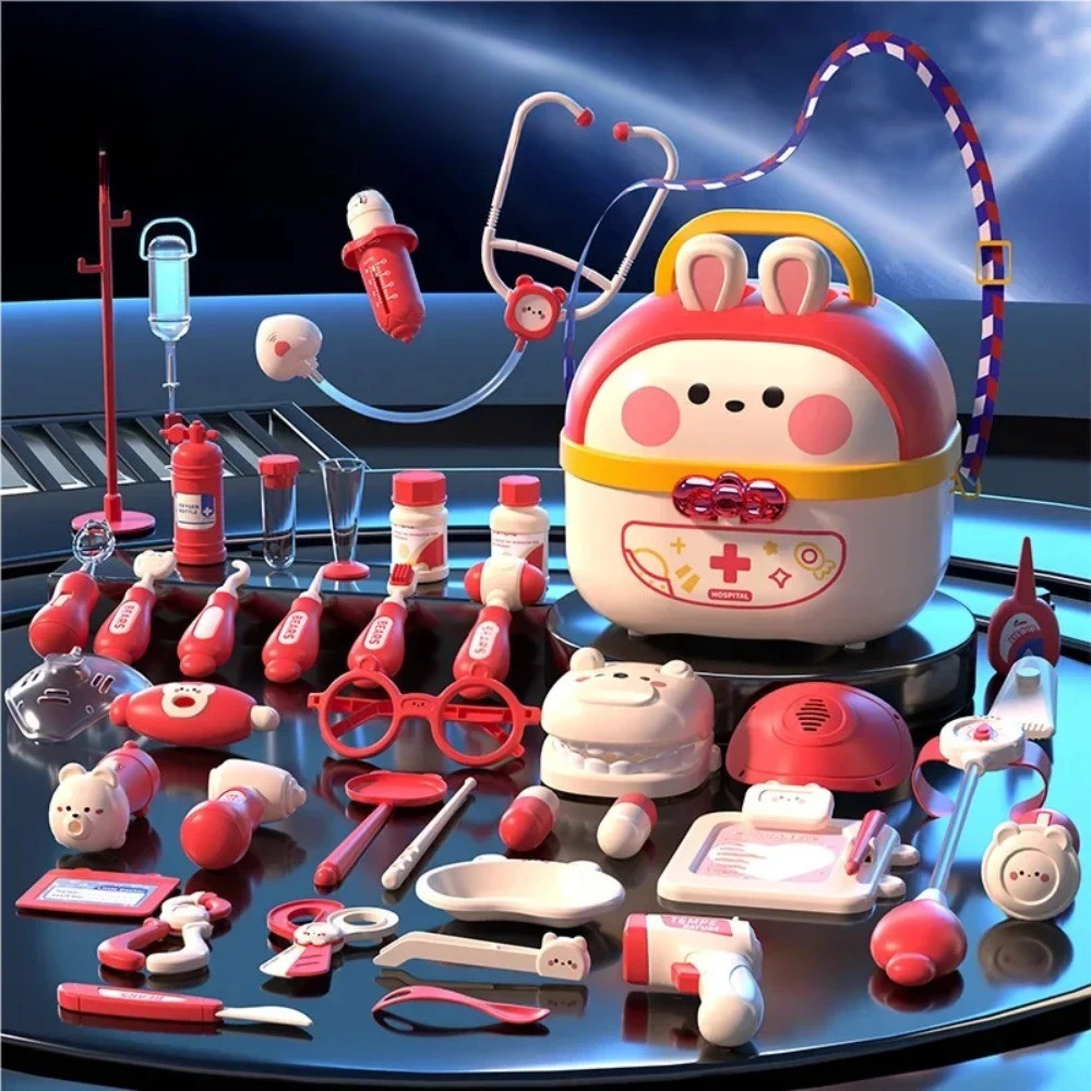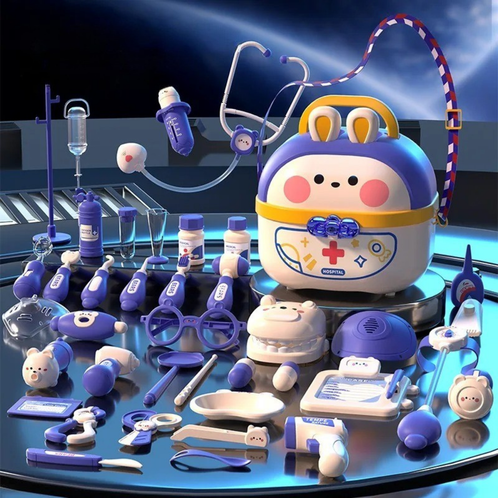 Cada elemento está pensado para recrear situaciones del día a día en un hospital o consultorio. Desde jeringas y estetoscopios hasta frascos y termómetros, este kit logra que el juego de roles sea más realista y entretenido.