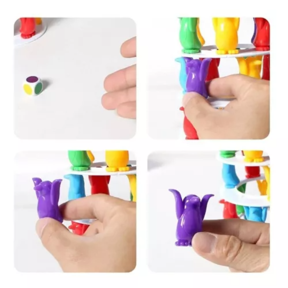 El Penguin Tower Collapse es un divertido juego de mesa de equilibrio que pone a prueba la destreza y concentración de los jugadores. La dinámica consiste en retirar cuidadosamente los pingüinos de la torre sin que esta se derrumbe.