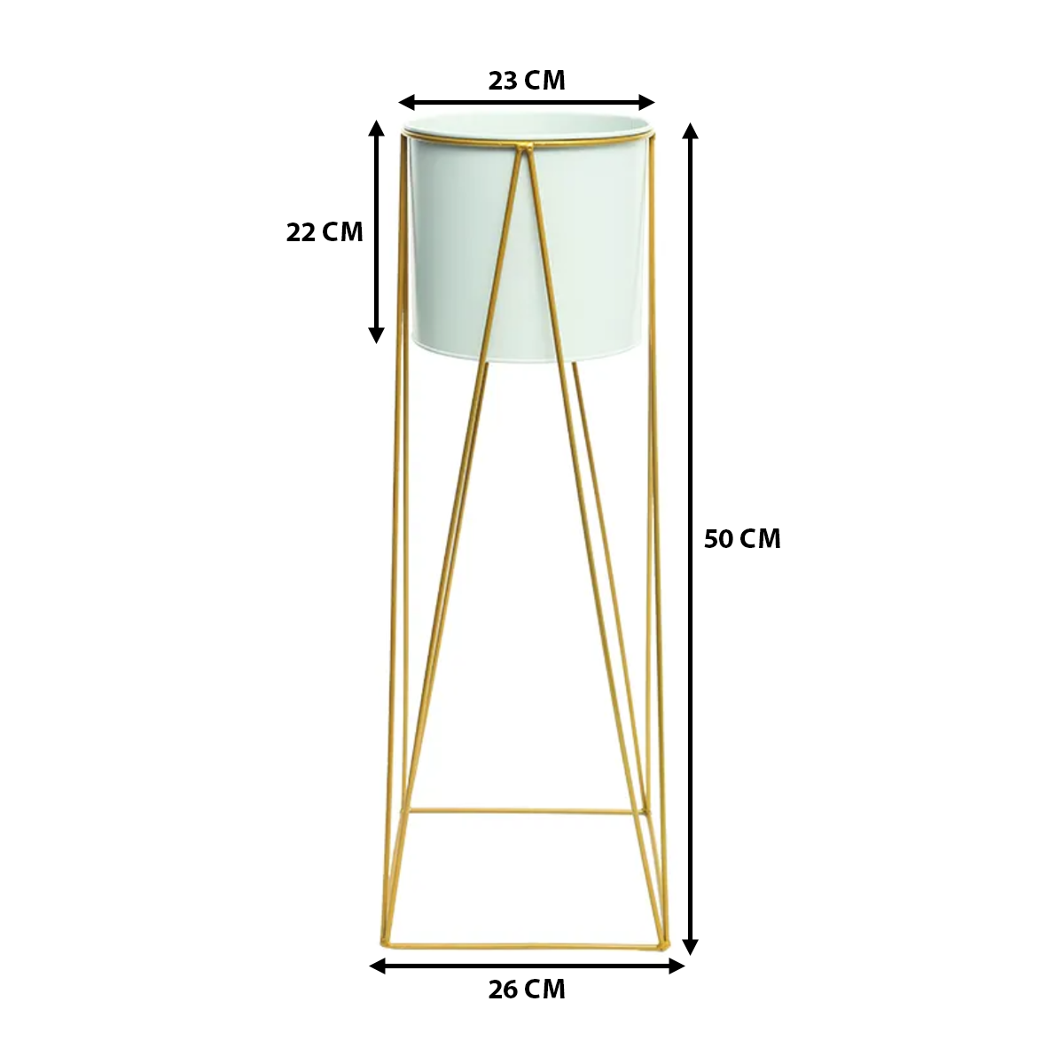 Porta Macetero Pedestal Maceta Plantas Blanco Dorado Mediano