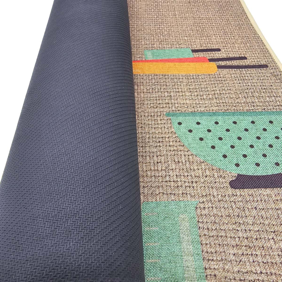 Este set de dos alfombras de goma antideslizantes con diseño "Cocina" es ideal para cualquier hogar. Ofrecen una superficie segura y cómoda para trabajar, reduciendo el riesgo de resbalones.