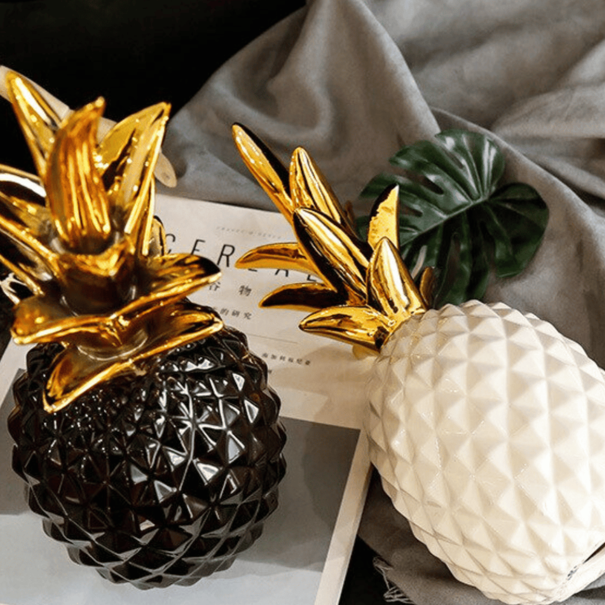 Fabricadas con cerámica de alta calidad, cada piña presenta detalles intrincados y un acabado excepcional. Puedes colocarlas en estantes, mesas o como elementos decorativos independientes.