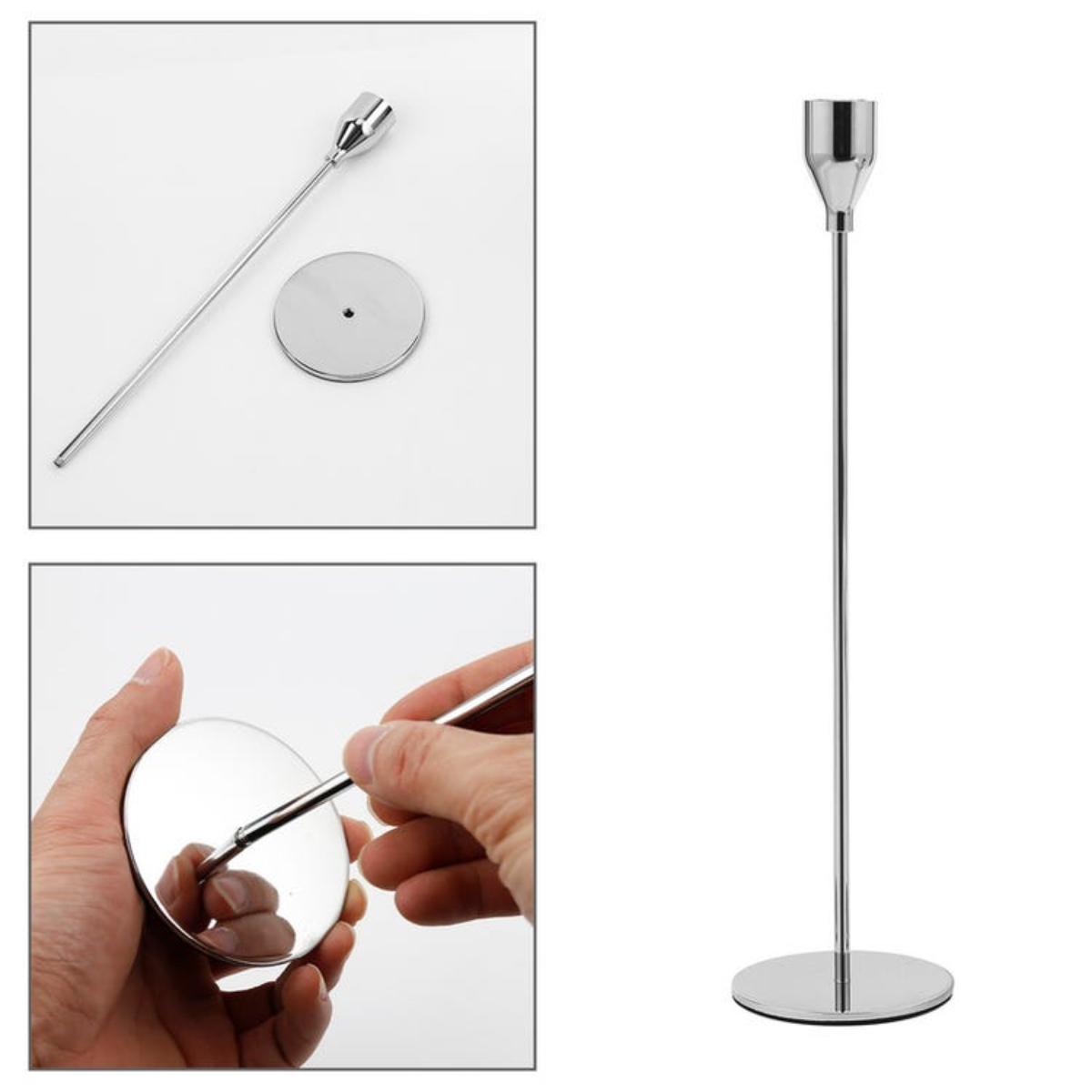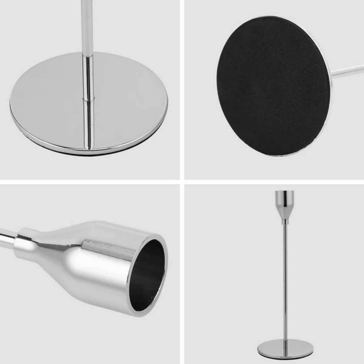 Haz que tu mesa brille con el estilo único de estos candelabros plateados.