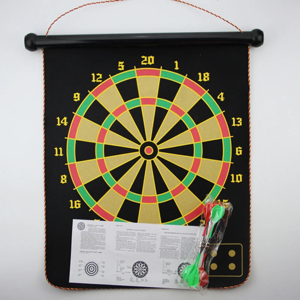 Es reversible y ofrece dos diseños distintos en una sola pieza: un tablero clásico de puntuación y otro con un estilo alternativo, lo que agrega variedad y más diversión a cada partida. Incluye dardos magnéticos listos para usar.