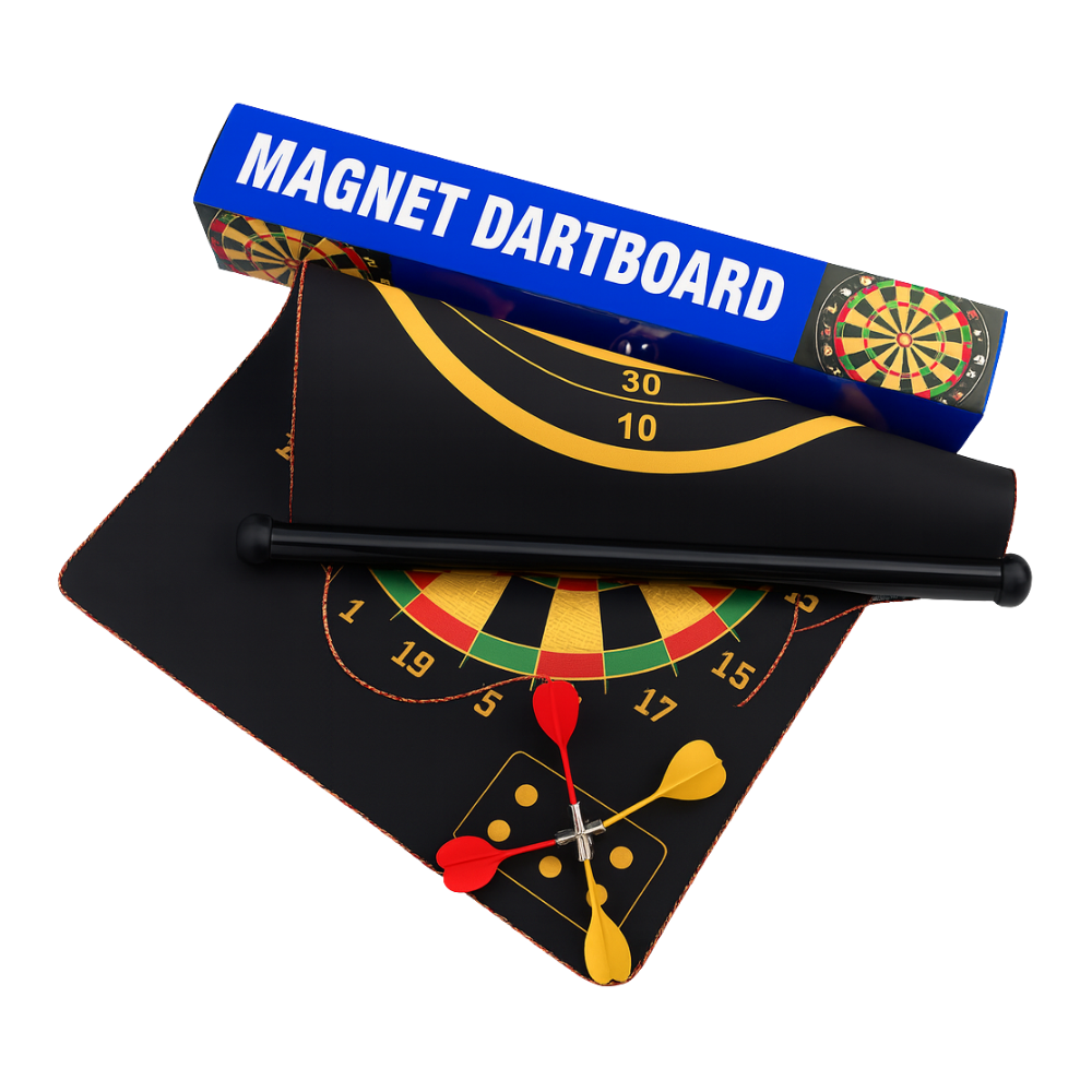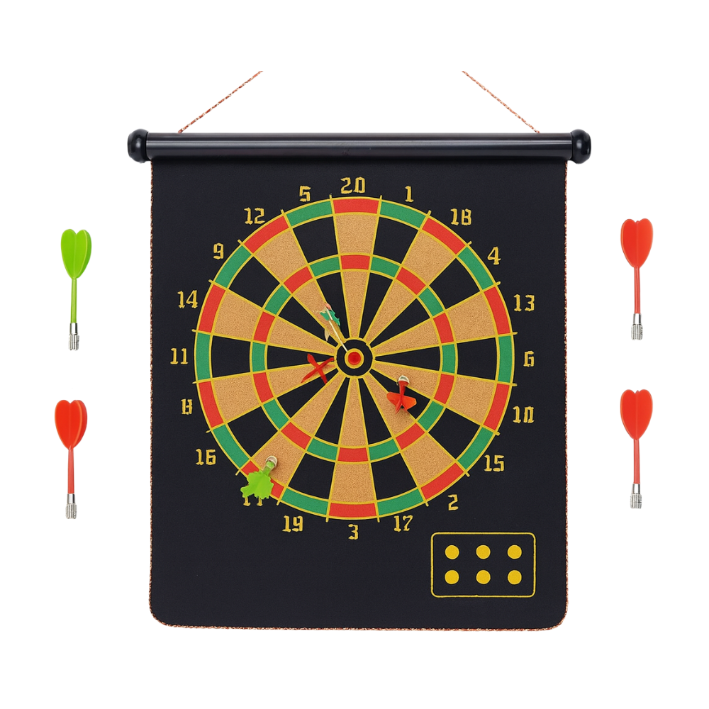 Este tablero de dardos magnético es una excelente opción para la entretención segura de niños y adultos, ya que reemplaza las puntas metálicas por imanes, evitando accidentes y permitiendo jugar en casa sin riesgos.